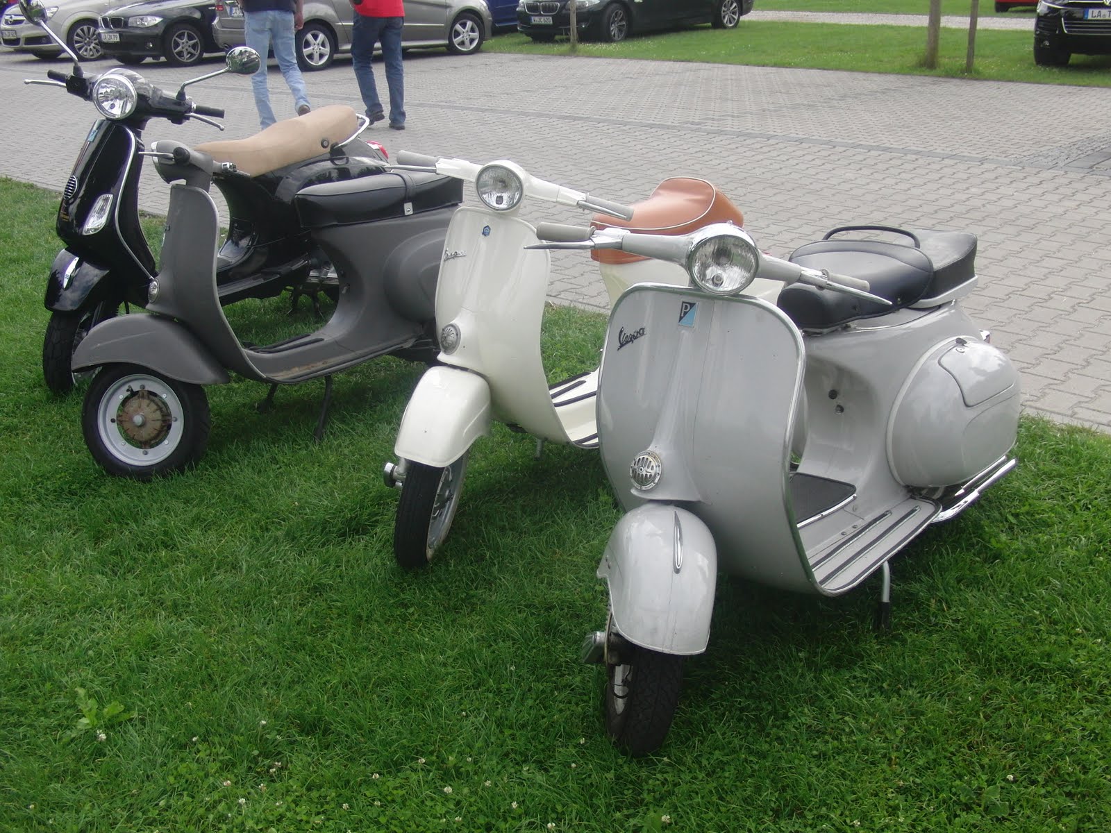 So, auch das hätten wir. Mein erstes Vespa-Treffen. Bei der Abfahrt gab es gleich einen Wolkenbruchartigen Regenschauer und meine Vespa blieb "natürlich" gleich stehen (arggghh). Ok, dachte ich, die springt eh gleich wieder an. Denkste. 20 min. später lief sie aber wieder um dann gleich nach ca. 2 km wieder stehen zubleiben (shit). Lacky grinste nur. Nach wiederum 20 min sprang sie dann endlich wieder an, um dann aber ohne Probleme durchzuhalten :-)). Das Treffen war mit ca. 100 Rollern gut besucht und ich fand das eine oder andere kleine Ersatzteil.CU Frosch
